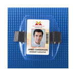 For those in active fields, this vertical arm strap badge holder is perfect. The elastic strap ensures a snug, yet flexible fit. It won't slip off of clothes and stretches as needed. One half inch longer and three-eighths wider than a credit card.